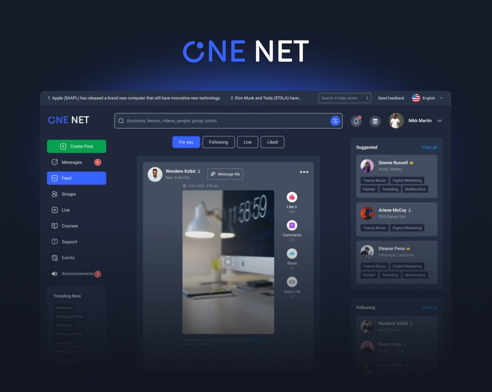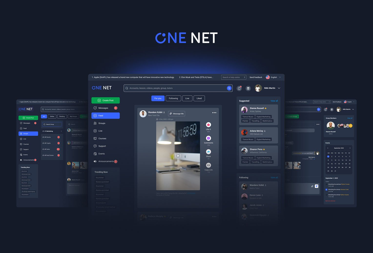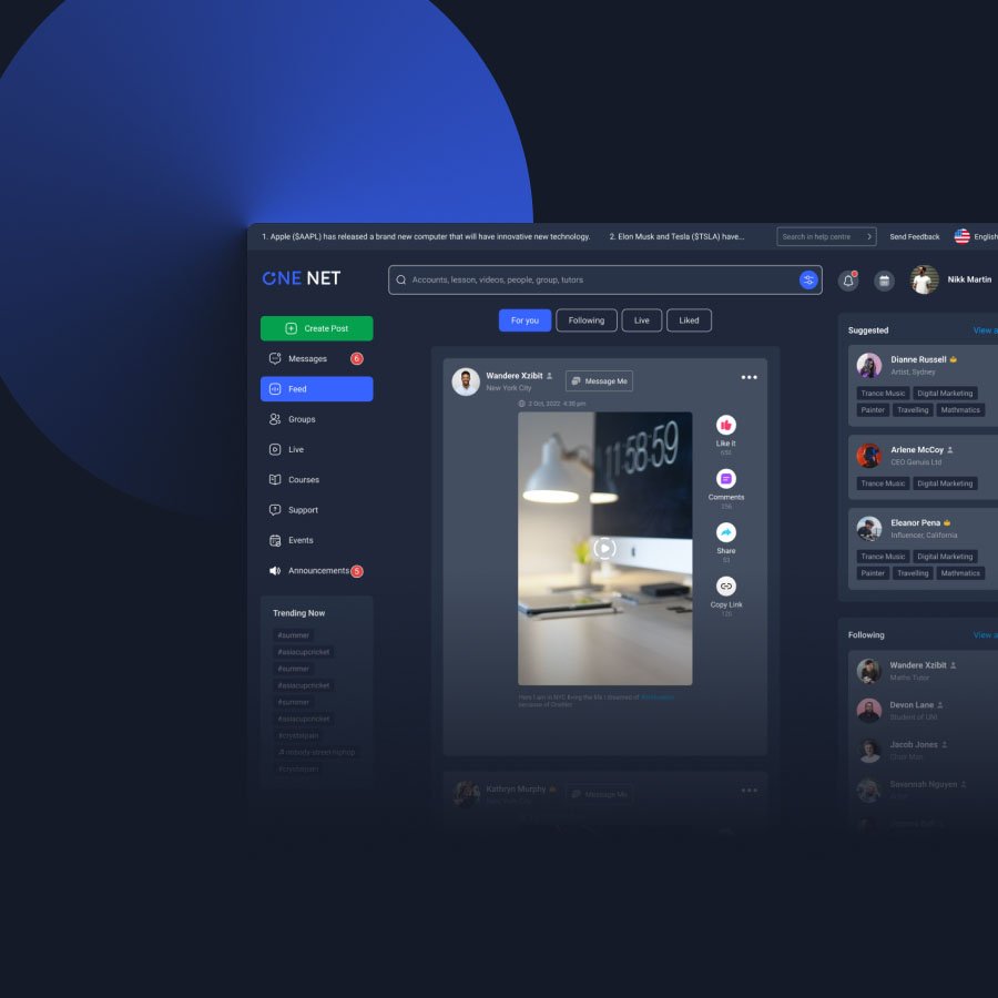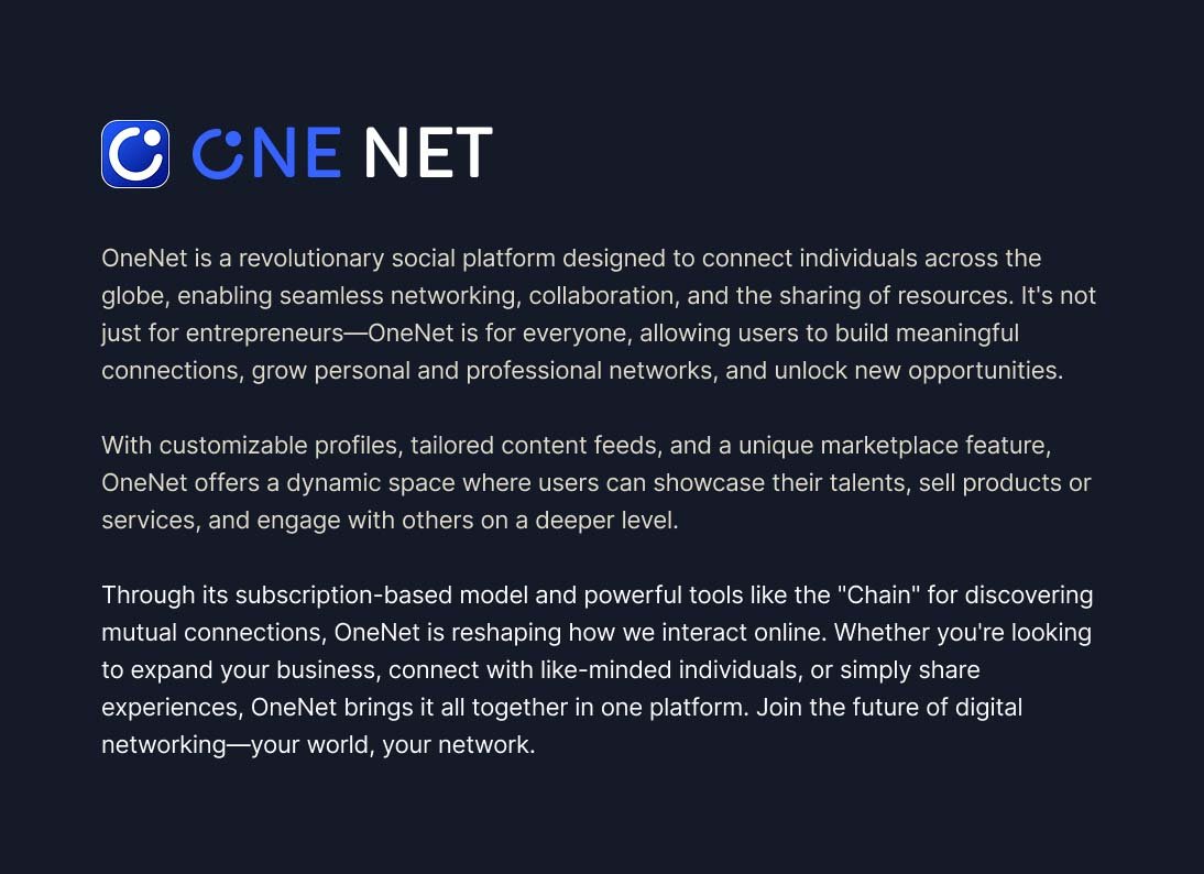 OneNet is a global social networking platform built to support meaningful connections, collaboration, and resource sharing. I designed the logo and a scalable web panel that translates complex networking features into a clear, user-friendly dashboard.